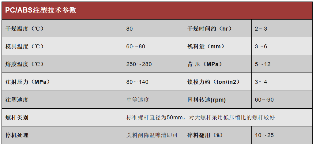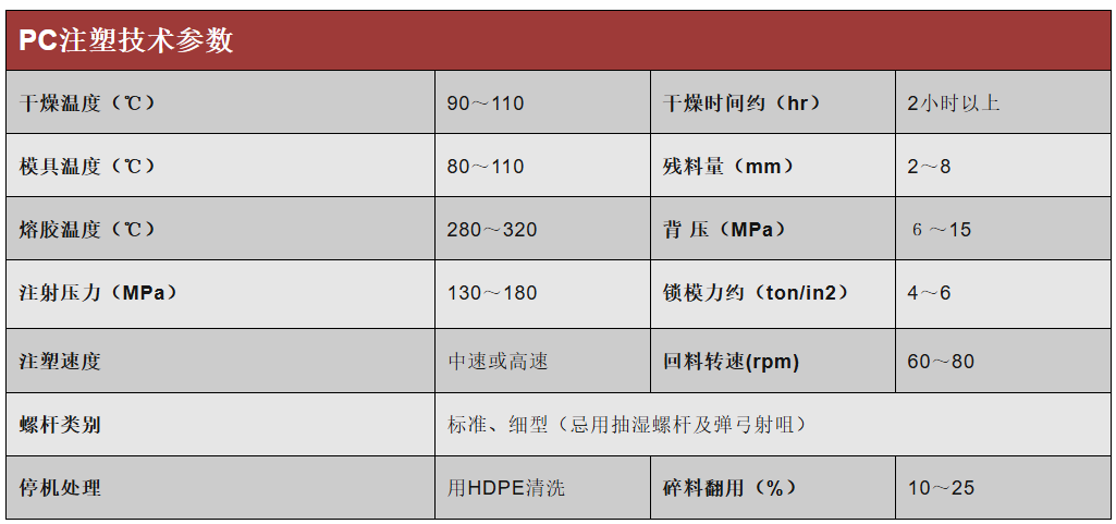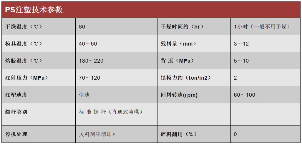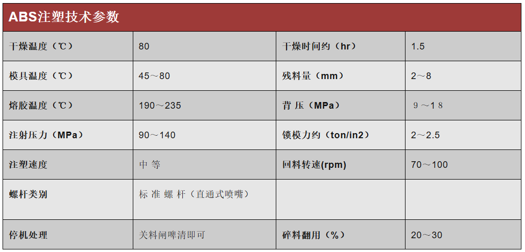 常见塑料的注塑参数