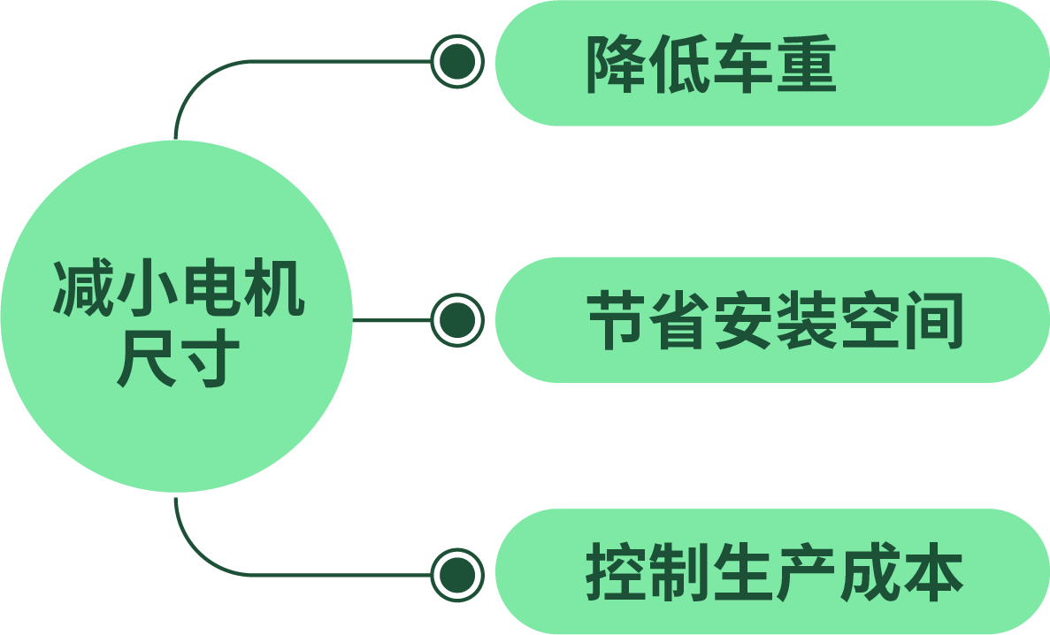 电动车因电池存在固有重量,减重成为整车设计的核心课题,而电机作为电驱系统的核心,其小型化、轻量化更是重中之重。减小电机尺寸,不仅能直接降低车重、节省安装空间,还能减少昂贵稀土材料的使用,大幅控制生产成本。