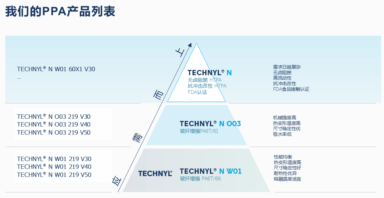DOMO在持续提供高品质PA6/PA66材料的同时,也致力于PPA与LCPA的产品开发与技术储备。TECHNYL® N系列PPA产品的系统化开发,正是我们响应市场对材料性能纵深需求的重要体现。