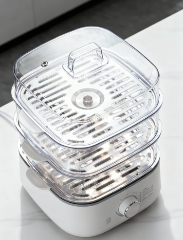 Clarnate® PC材料透光率高达90%以上,外观清澈如玻璃,完美呈现食材本真色泽。同时具备优异抗冲击性能,不易破裂,适用于破壁机杯体、空气炸锅观察窗等,兼顾美学与耐用,让使用更安心。