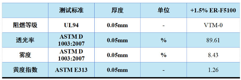 表1. 诺为离子液体阻燃BOPET薄膜的阻燃和光学性能