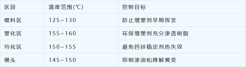 - 控温精度:塑化段温度提高5~8℃(对比传统DOP体系)