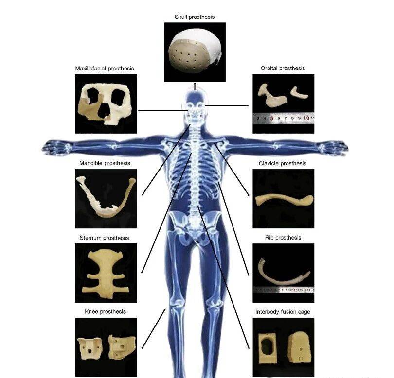 颅颌面重建:3D打印的PEEK植入物已成为修复颅骨缺损的热门选择。其轻质、可定制、与骨骼的力学相容性为脑组织提供了更好的保护。