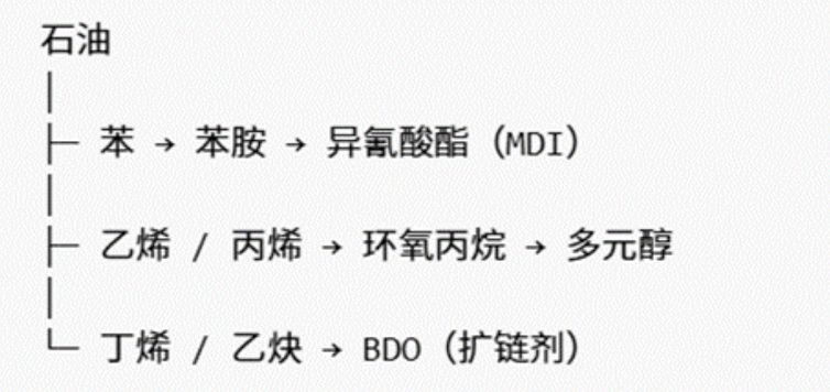 它的三种核心原料——多元醇、异氰酸酯和扩链剂,均通过石油裂解产生,本质上是一种石油化工材料。