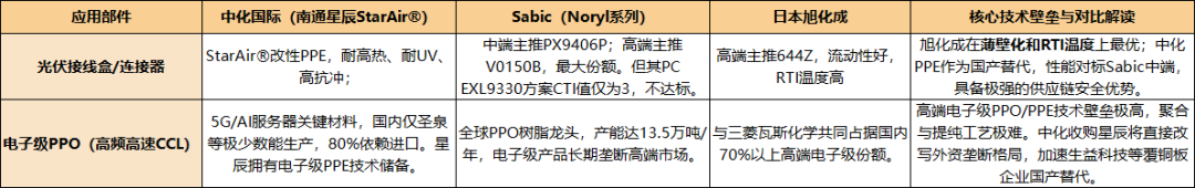 PPE具备极佳的介电性能和耐热性,是5G基站、AI服务器超低损耗电路板的核心基材。南通星辰拥有5万吨/年PPE产能,国内第一、全球第二。
