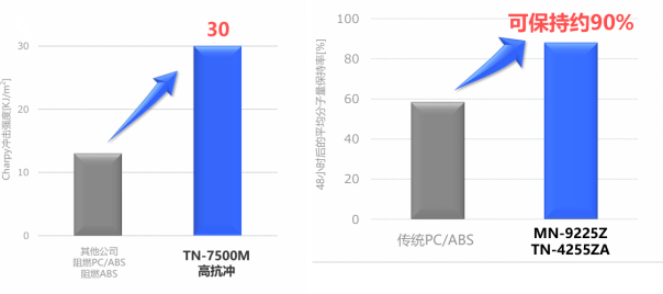 强耐久性与稳定性:PC 合金系列如 TN-4255ZA 在 120℃/100% RH 高温多湿环境下,48 小时后平均分子量保持率仍达 90%,远超传统材料,适合长期使用的医疗设备;