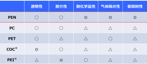 相比传统 PC、PET 材料,PEN 系列在耐化学品性、气体隔绝性、低吸附性上表现突出,成为高端医疗设备的优选:
