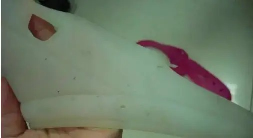 4、滑块里面漏水生锈或其它污渍,锈和污渍被滑块活动飞出,落在制品上会形成黑点。