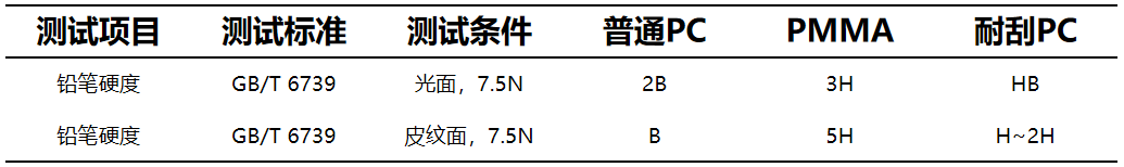 硬度王者PMMA,耐刮擦性能表现优异。