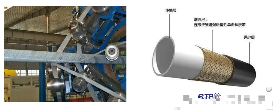 热塑性复合材料的缠绕成型可以采用预浸纤维或者预浸带进行,具有生产效率高,产品质量稳定,容易实现机械化和自动化,便于大批量生产等特点,适用于生产大型的且表面曲率均为正的构件,尤其是在各种生产管道、压力 容器、飞机结构件等制备领域具有广泛的应用前景。
