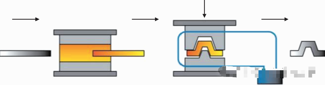 图 冲压成型工艺制备高性能热塑性复合材料过程示意图,图源网络
