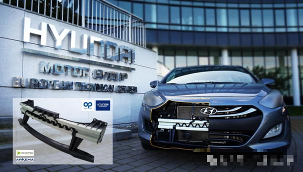 图 彼欧采用法国CQFD 公司开发的原位拉挤工艺制成的现代汽车前保险杠防撞梁