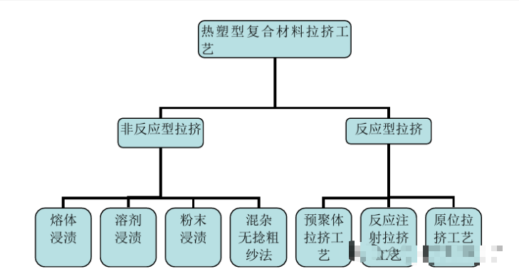 拉挤成型工艺是将浸渍树脂胶液的连续纤维束、带或布等,在牵引力的作用下,通过挤压模具成型、固化,连续不断地生产长度不限的型材。热塑性复合材料拉挤工艺,根据预浸技术可分为非反应拉挤成型和反应拉挤成型两大类。