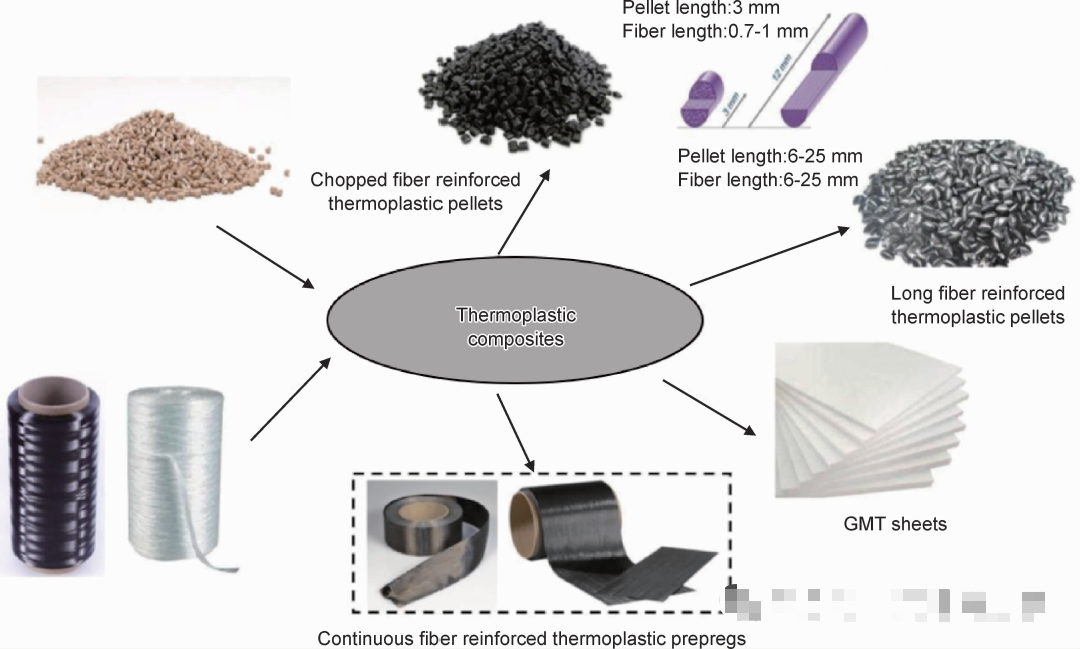 成型工艺是复合材料由原材料转化为结构件的关键步骤。而热塑性复合材料根据增强方式的不同,可分为短纤维(0.2-0.6mm)、长纤维(约20mm)及连续纤维增强热塑性复合材料三类,不同材料所采用的成型工艺也不同。