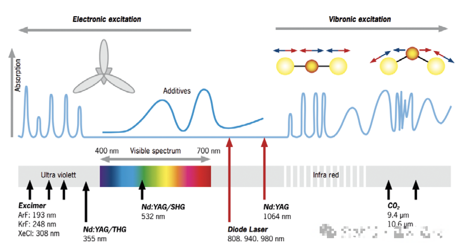 激光应用的 “波长 - 吸收 - 作用机制” 地图 ,帮读者理解 “不同激光怎么选、材料如何响应、添加剂咋调控”