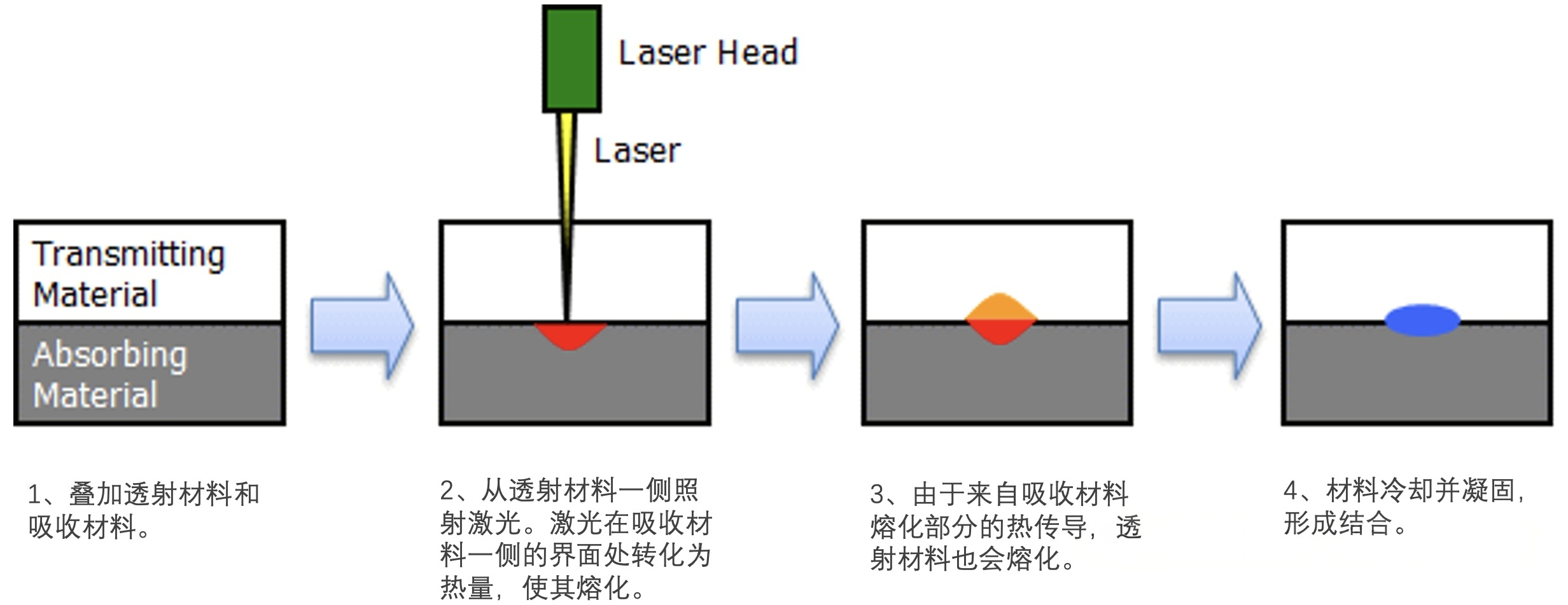 简单来说,激光焊接是用激光束穿透上层塑料,加热并熔化下层塑料,然后通过热传导使上层材料也熔化,在加压状态下形成强度极高的焊缝。