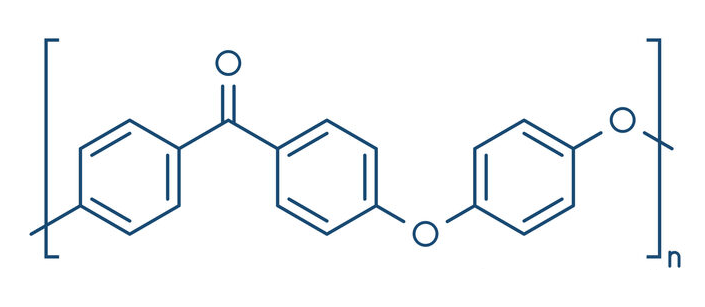 PEEK(聚醚醚酮)是一种芳香族半结晶线性热塑性聚合物,其分子链上含有苯环、醚键和羰基,对亚苯基通过氧桥(醚和酮)连接。这种特殊的化学结构使得PEEK具有稳定的化学性质,从而表现出耐热、耐辐射、耐化学腐蚀、机械强度高等优良特性,并广泛应用于航空航天、医疗、汽车等领域。