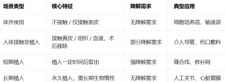 材料的降解需求,完全由使用场景、植入时长、接触组织类型决定,不同场景对降解的要求天差地别。