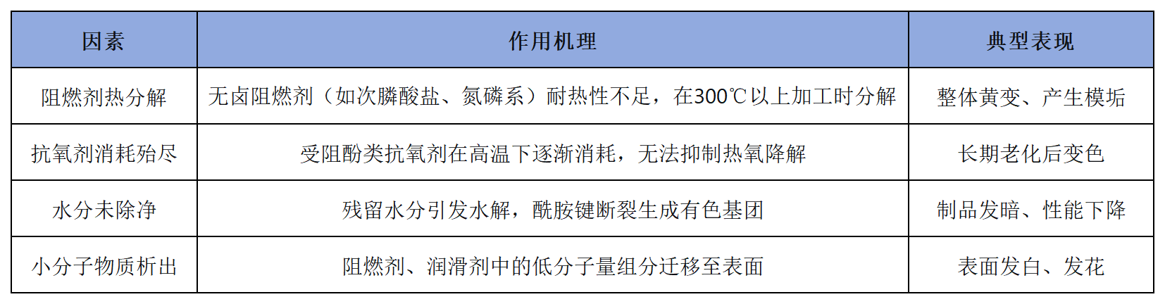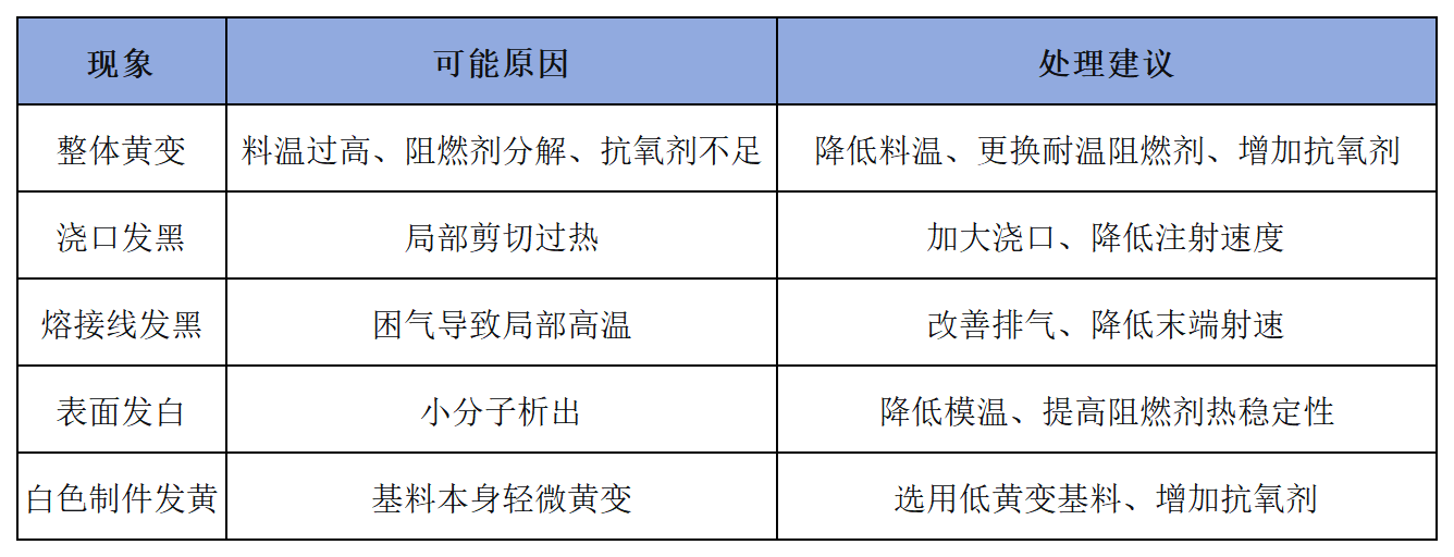 无卤阻燃高温尼龙的注塑变色,通常不是单一因素造成的,而是材料体系、加工工艺、模具设计三者共同作用的结果。
