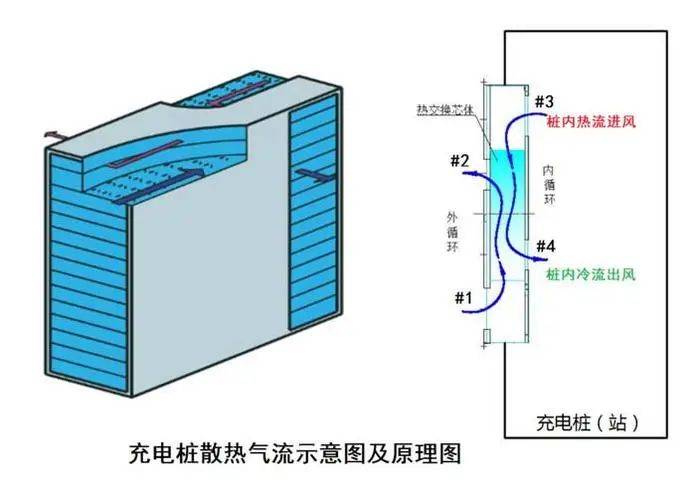 主要是通过风扇等设备,将空气吸入充电桩内部,然后通过热交换将热量加速排出。这种技术的优点是结构简单、成本低廉,因此在一些小型的充电桩中应用比较广泛。