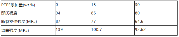 表1 PEEK/PTFE复合材料的机械性能与PTFE添加量的关系