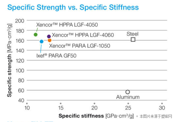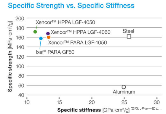 低翘曲;低收缩;低线膨胀系数;耐蠕变;耐疲劳性;高抗冲;热水可满足模温要求;高温强度