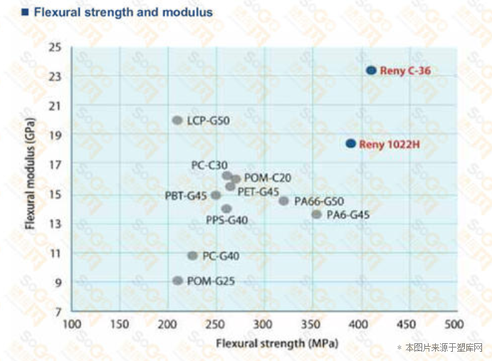 低翘曲;低线膨胀系数;耐蠕变;耐疲劳性;高抗冲;高刚性;高硬度;高拉伸强度;热水可满足模温要求
